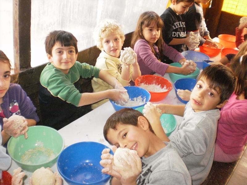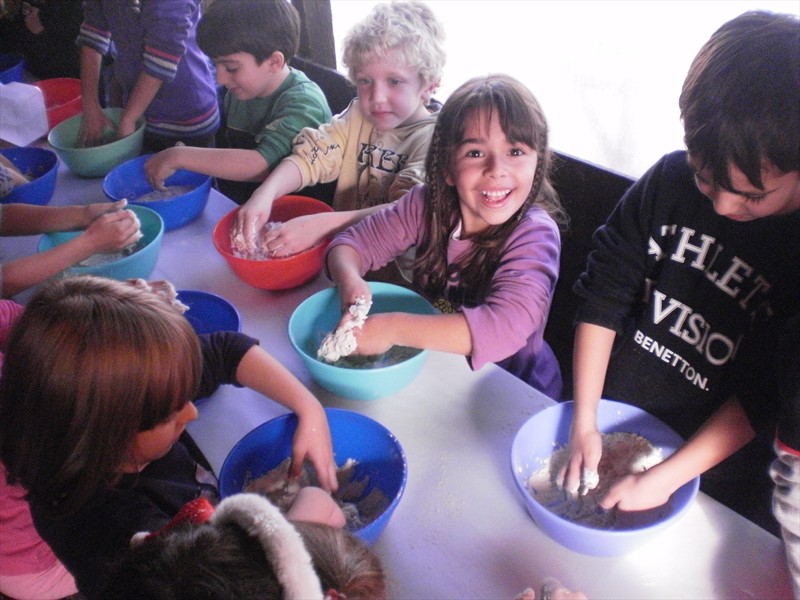 Οι μικροί μας μαθητές της Α΄ τάξης βίωσαν όλες τις φάσεις δημιουργίας του ψωμιού και έφτιαξαν ο καθένας το δικό του ψωμάκι. «Στην αρχή ρίξαμε το σιτάρι στον πετρόμυλο για να το αλέσουμε και να γίνει αλεύρι», είπε η Κέλυ Ορφανίδου (Α2). «Μετά βάλαμε νερό , αλεύρι , προζύμι και ανακατέψαμε τα υλικά και φτιάξαμε ψωμάκια δήλωσε η Δήμητρα Σχιστοχείλη (Α4) και τέλος η Ραφαέλλα Σιώρου (Α3) είπε γεμάτη ενθουσιασμό: «ζυμώσαμε το πιο νόστιμο ψωμί που έφαγα ποτέ. Αισθανθήκαμε σα νοικοκυραίοι!»