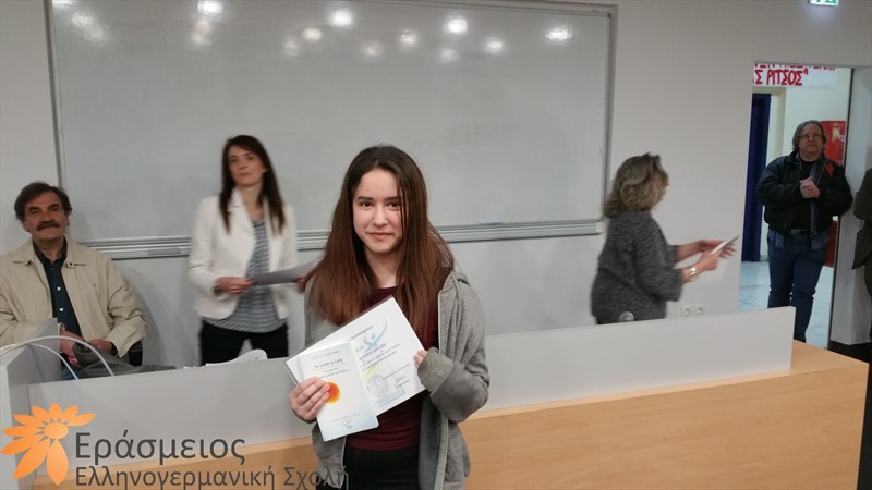 Η μαθήτρια της Β' Λυκείου Κυριακή Κοντογιαννίδη κατέκτησε την 2η θέση στον 15ο Πανελλήνιο Μαθητικό Διαγωνισμό Βιολογίας 2019 που διοργάνωσε η Πανελλήνια Ένωση Βιοεπιστημόνων (Π.Ε.Β.). Η επιτυχία της Κυριακής μάς γέμισε όλους υπερηφάνεια και αποτέλεσε για τη Σχολή μας ξεχωριστή τιμή. Το σύνολο της σχολικής κοινότητας της Ερασμείου Ελληνογερμανικής Σχολής τής εύχεται να έχει πάντοτε ανάλογες επιτυχίες στην μαθητική, ακαδημαϊκή και επαγγελματική της πορεία.