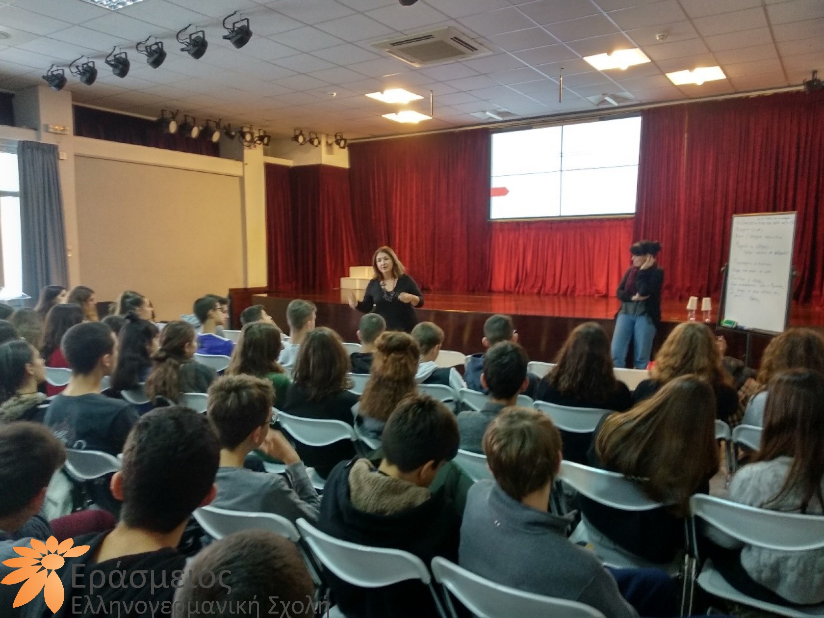 Την Πέμπτη, 5 Δεκεμβρίου 2019, οι μαθητές της Γ’ Γυμνασίου της Σχολής μας ενημερώθηκαν μέσα από μία βιωματική δράση για τις βλαβερές συνέπειες των εξαρτησιογόνων ουσιών, καθώς και για τους τρόπους πρόληψης και αντιμετώπισής τους. Τις πολύτιμες συμβουλές τους έδωσαν στους μαθητές οι συνεργάτιδες του Κέντρου Θεραπείας Εξαρτημένων Ατόμων (ΚΕΘΕΑ), Αι. Μαρκουίζου – Γκίκα, Ψυχολόγος της Εκπαίδευσης και Σύμβουλος Τοξικοεξάρτησης και Χ. Γώγου, Ψυχολόγος, Σύμβουλος Πρόληψης.