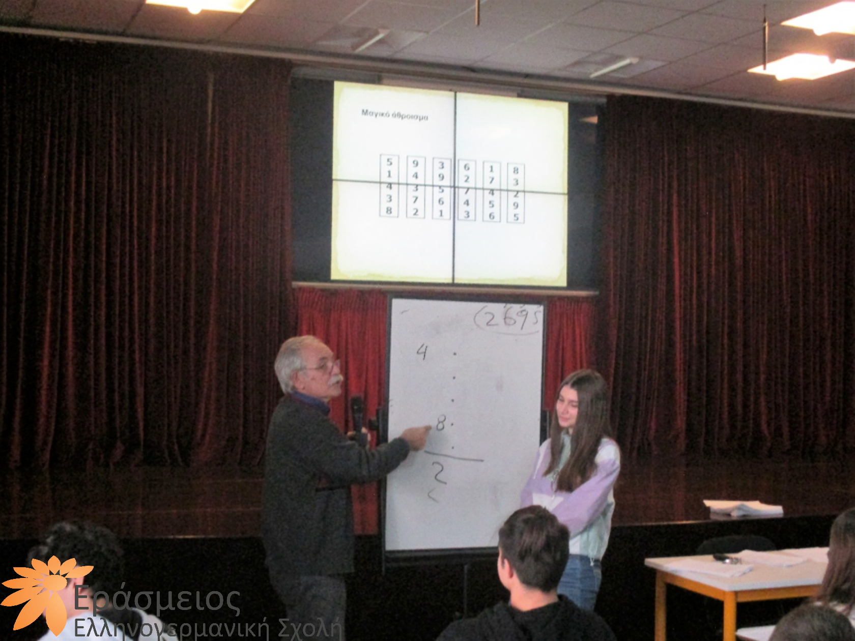 Η Σχολή μας, στο πλαίσιο της προσπάθειας να βοηθήσει όλους τους μαθητές να αναδείξουν τις δυνατότητές τους και να υιοθετήσουν μία θετική στάση απέναντι στα Μαθηματικά, την Τετάρτη, 22 Ιανουαρίου 2020, και την Πέμπτη, 23 Ιανουαρίου 2020, είχε τη χαρά και την τιμή να φιλοξενήσει τον καθηγητή του τμήματος Μαθηματικών του Πανεπιστημίου Κρήτης κ. Μιχάλη Λάμπρου, υπεύθυνο στην Ελλάδα για τον παγκόσμιο διαγωνισμό στα Μαθηματικά, «Καγκουρό», ο οποίος συντόνισε το «Εργαστήρι Μαθηματικών» για τους μαθητές του Γυμνασίου. Με έναν τρόπο ελκυστικό και διασκεδαστικό για τους μαθητές, με παιχνίδια και σπαζοκεφαλιές, ο κ. Λάμπρου τούς βοήθησε να συνειδητοποιήσουν ότι τα Μαθηματικά αφορούν σε όλους και όχι μόνο στους ταλαντούχους και ότι καλλιεργούν τη σκέψη και προσφέρουν πνευματική ικανοποίηση.