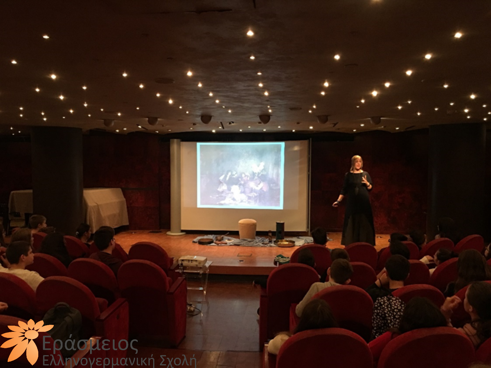 Μια ευκαιρία για να καλλιεργήσουν την αισθητική τους παιδεία αλλά και τις γνώσεις τους σε σχέση με τις ιστορίες μυθοπλασίας, είχαν την Τετάρτη, 6 Νοεμβρίου 2019, οι μαθήτριες και οι μαθητές της Α Γυμνασίου της Σχολής μας. Στο πλαίσιο της επίσκεψής τους στο Ίδρυμα Εικαστικών Τεχνών και Μουσικής Β. & Μ. Θεοχαράκη, παρακολούθησαν μια αφηγήτρια – αοιδό να ζωντανεύει, με ρυθμό και μουσικότητα, θαυμαστές περιπέτειες του Οδυσσέα από τη ραψωδία ι της Οδύσσειας, και κατανόησαν πώς πλάθεται μια φανταστική ιστορία, αλλά και τους τρόπους που υπάρχουν σε όλο τον κόσμο, για να την αφηγηθεί κανείς.