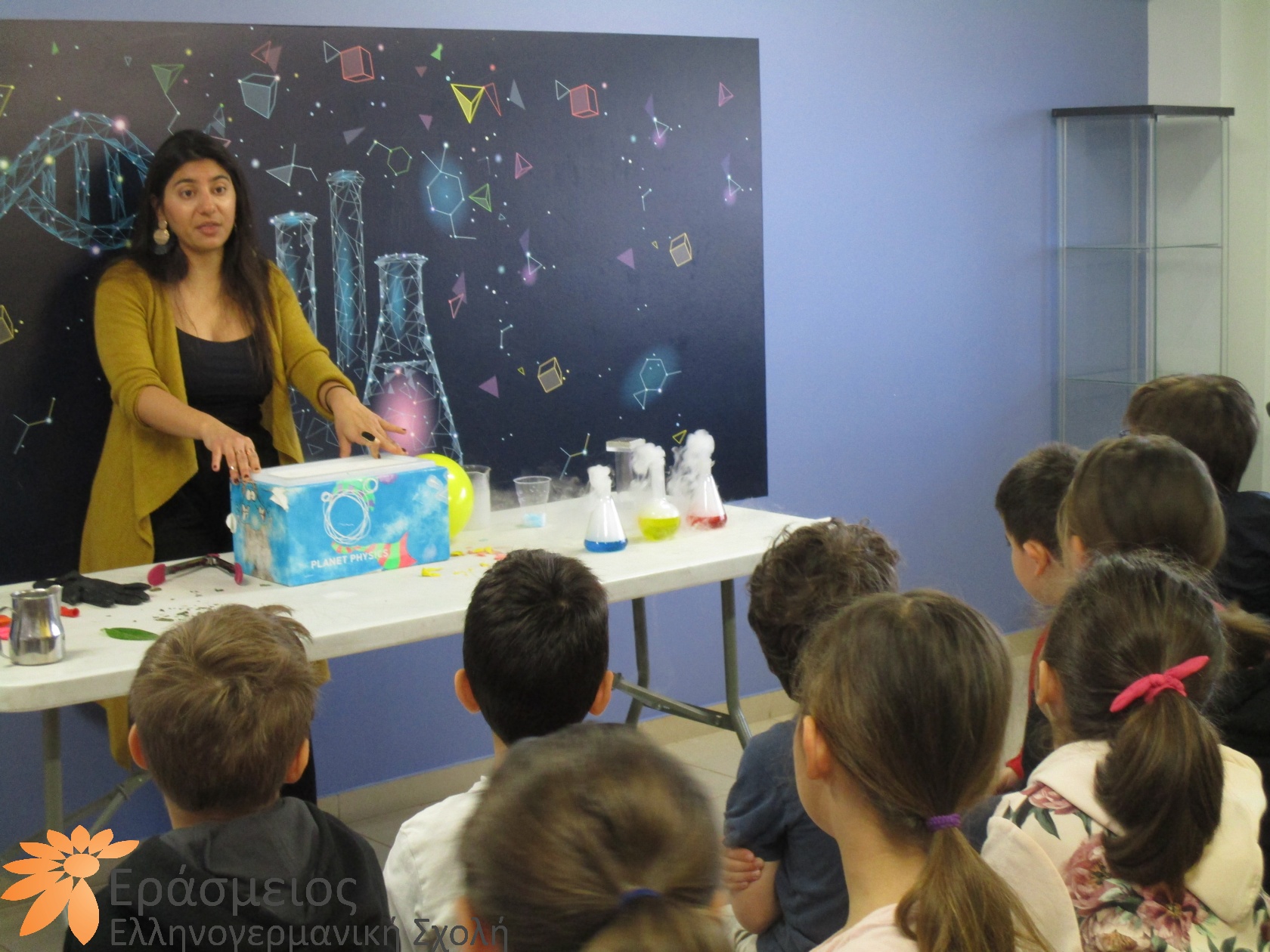 : Οι μικροί μας μαθητές της Β’ τάξης πήραν μέρος στο εκπαιδευτικό πρόγραμμα «Πειράματα ψύχους». Τα παιδιά ενθουσιάστηκαν με τα πειράματα που είδαν στον ειδικά διαμορφωμένο χώρο. Ενημερώθηκαν για φυσικά φαινόμενα όπως το τσουνάμι, τους ήχους που υπάρχουν γύρω μας, τις εφαρμογές του ηλεκτρικού ρεύματος στην καθημερινότητά μας. Στόχος της επίσκεψης ήταν να διασκεδάσουν και να ενθουσιαστούν και ταυτόχρονα να τους καλλιεργήσουμε μια διαφορετική λογική σκέψη για όσα συμβαίνουν γύρω μας!