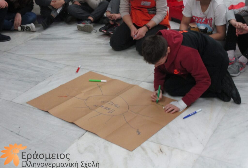 Οι μαθητές της Ε’ τάξης επισκέφτηκαν το πολεμικό μουσείο. Εκεί συμμετείχαν στο εκπαιδευτικό πρόγραμμα «Ιστορικοί στο μουσείο». Συγκεκριμένα, οι μαθητές , αφού ξεναγήθηκαν στους χώρους του μουσείου, έκαναν έρευνα και έγιναν «ιστορικοί». Ειδικότερα, παρατήρησαν τα εκθέματα και κατέγραψαν πληροφορίες. Στο τέλος, συζήτησαν σε ομάδες τα ευρήματά τους και συνέθεσαν ένα ομαδικό βιβλίο.