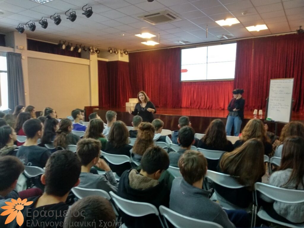Την Πέμπτη, 5 Δεκεμβρίου 2019, οι μαθητές της Γ’ Γυμνασίου της Σχολής μας ενημερώθηκαν μέσα από μία βιωματική δράση για τις βλαβερές συνέπειες των εξαρτησιογόνων ουσιών, καθώς και για τους τρόπους πρόληψης και αντιμετώπισής τους. Τις πολύτιμες συμβουλές τους έδωσαν στους μαθητές οι συνεργάτιδες του Κέντρου Θεραπείας Εξαρτημένων Ατόμων (ΚΕΘΕΑ), Αι. Μαρκουίζου – Γκίκα, Ψυχολόγος […]