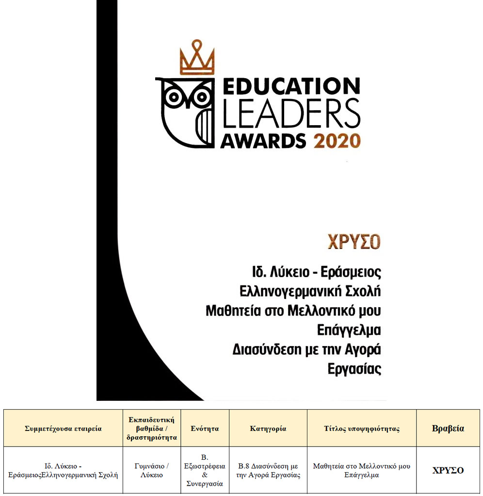 ΧΡΥΣΟ ΒΡΑΒΕΙΟ – EDUCATION LEADERS AWARDS