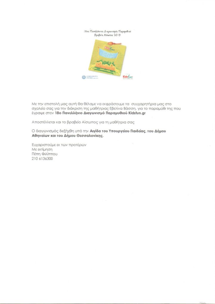 1o ΒΡΑΒΕΙΟ ΑΙΣΩΠΟΣ ΓΙΑ ΤΗ ΜΑΘΗΤΡΙΑ ΜΑΣ ΕΒΕΛΙΝΑ ΒΑΣΣΗ